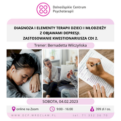 Temat szkolenia: Diagnoza i elementy terapii dzieci i młodzieży z objawami depresji. Zastosowanie kwestionariusza CDI 2.